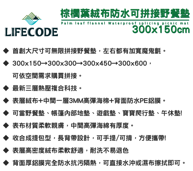 LIFECODE-加厚防水PE地墊(地席)600x400cm