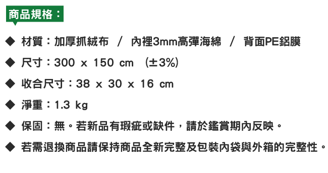 便攜輕薄型防水野餐墊 多層加厚 防潮拒水 150 × 180cm 綠色格紋