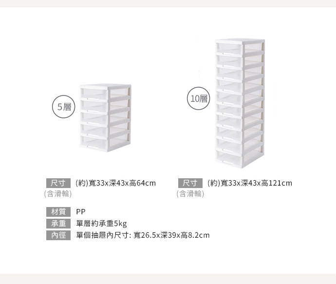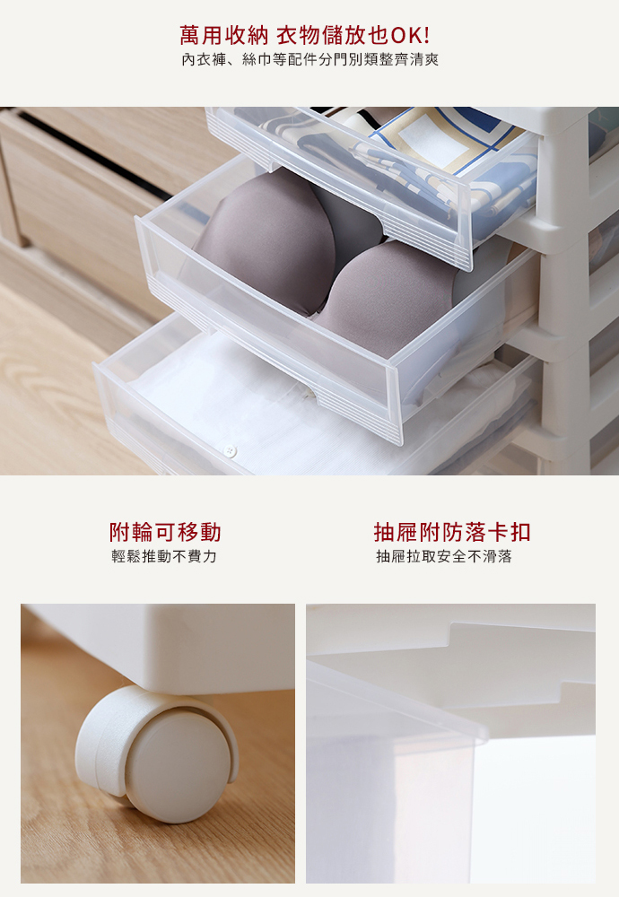 日本IRIS 五層抽屜式透明收納櫃 白色/透明 NSW545