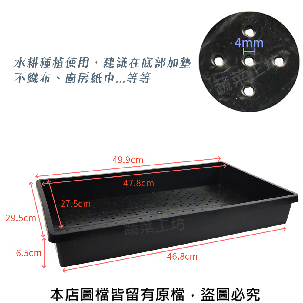 商品名稱:育苗箱(有孔)-黑色(育苗盤.芽菜箱.可當四方型栽培盆端盤) 10個/組