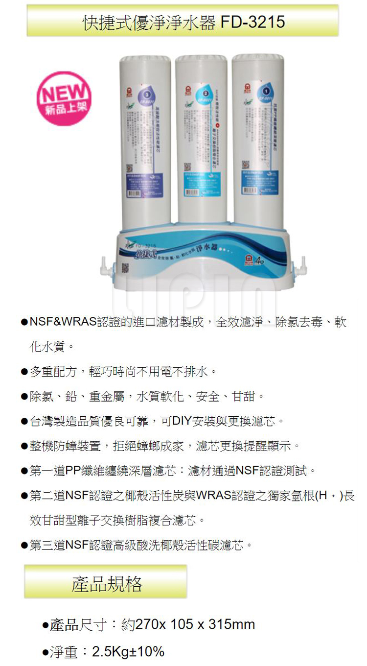 晶工廚上型快捷式優淨淨水器 FD-3215~不含安裝