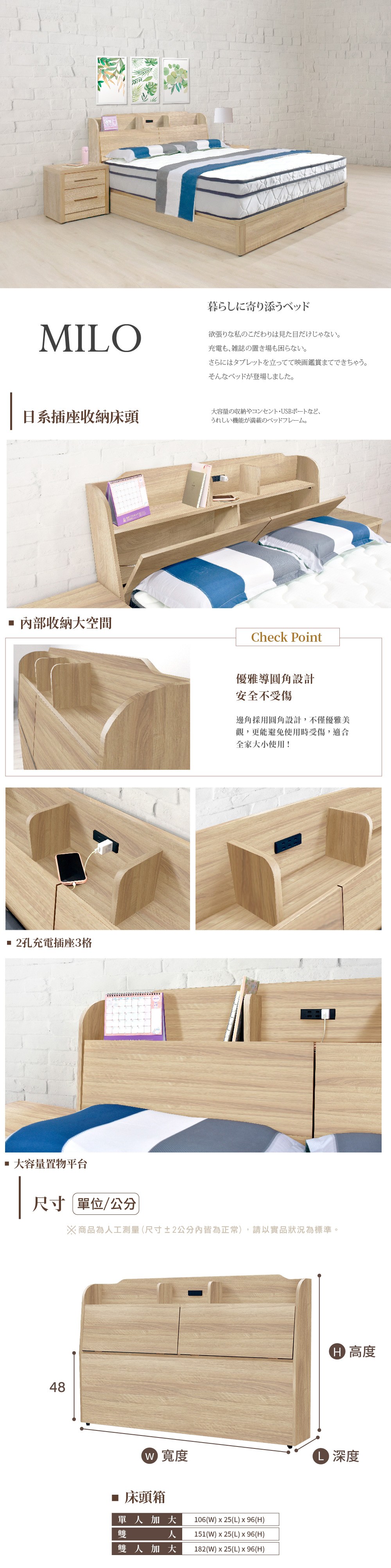 WAKUHOME 瓦酷家具Molly日系無印風三抽3.5尺床箱型2件組(床頭箱+床底)-寬106.3*深201.7*高100cm
