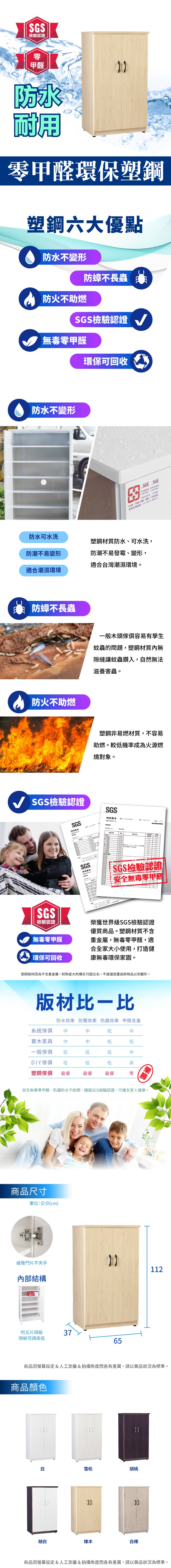 IHouse-貝莉 促銷款緩衝加深雙門塑鋼鞋櫃 (65x37x112cm)橡木