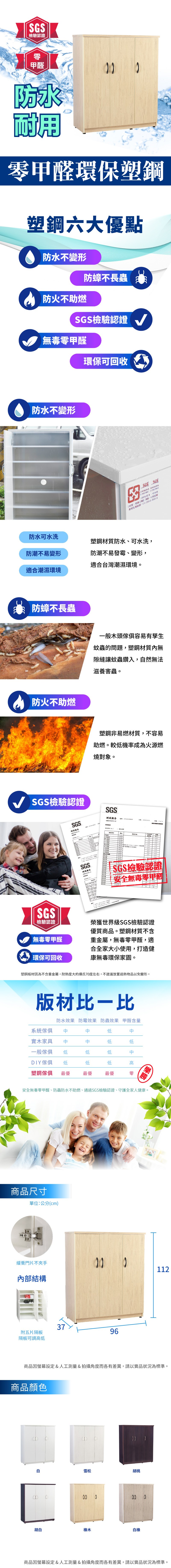 ASSARI-防潮防蛀塑鋼緩衝三門鞋櫃(寬96x深37x高112cm)雪松