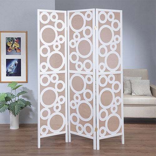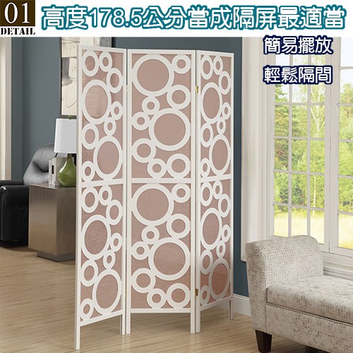 《C&B》水玉新設計風格三面屏風,高度足足有 178.5cm,外框 純實木製作,搭配 設計感十足的不規則大小圓形, 時尚感洋溢 ,台灣生產外銷日本,是高質感的台灣精品。