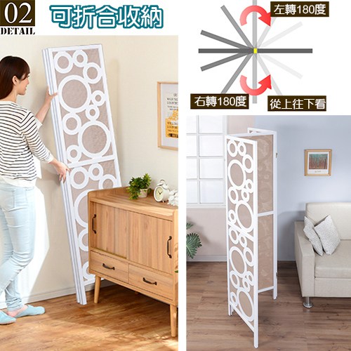 可 任意折合的特殊五金,想怎麼折都可以,各種角度皆可調整,能夠讓三面屏風依您的需要做成任何造型來擺放,屏風也變成是一種裝飾,輕易提升居家氛圍。不使用的時候,也可以輕鬆折合快速收納,牆角、床底、沙發底下都能收納不占空間。