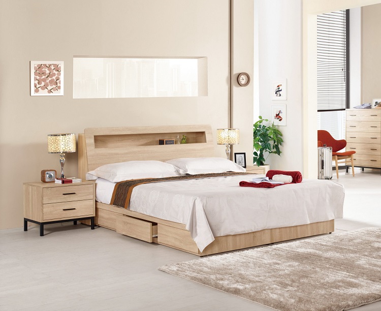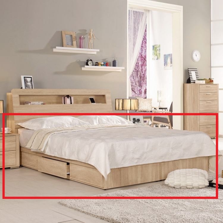 Homelike 喜家居雙人加大6尺六抽屜床組-原木色(2531)