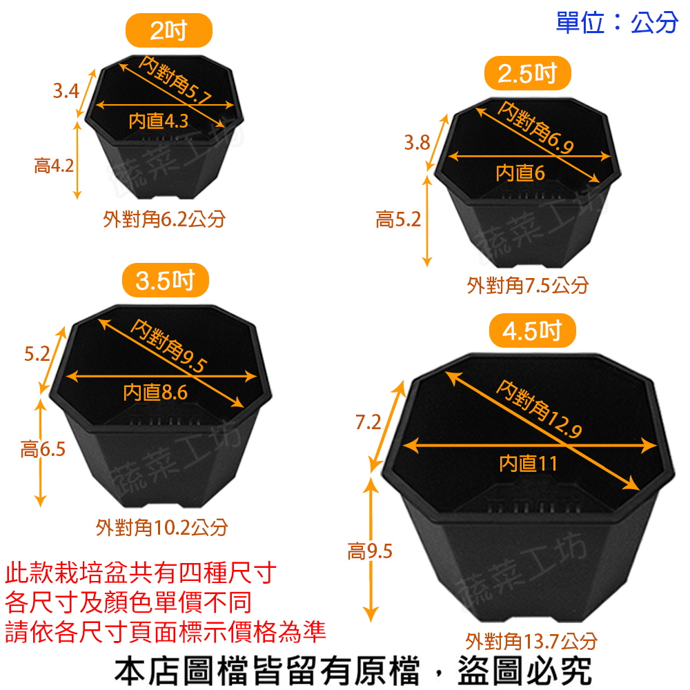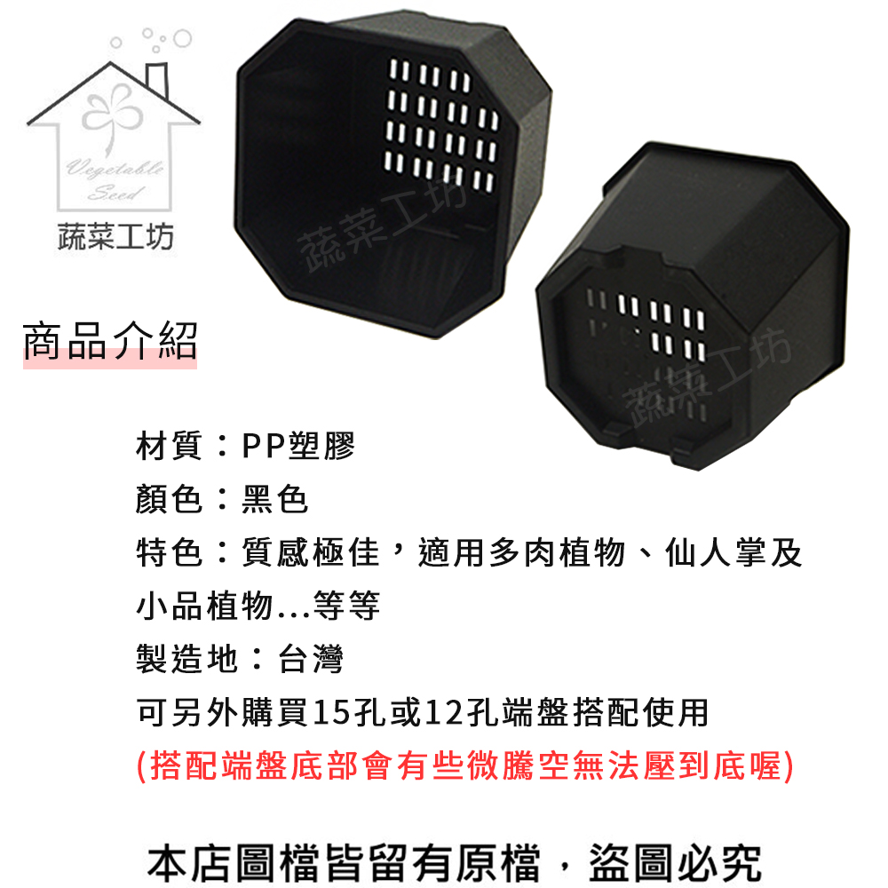 景天八角方型盆3.5吋(4號)-黑色100個/組