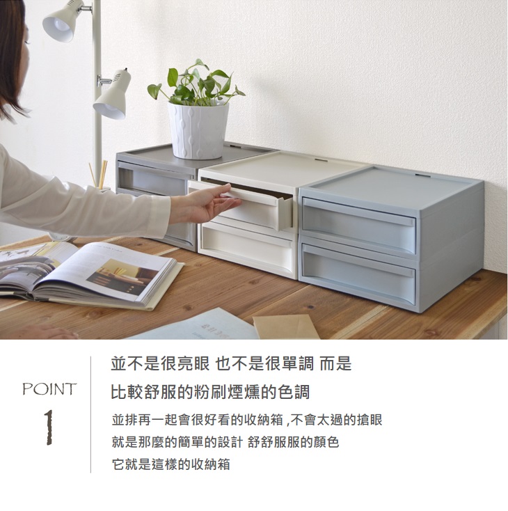 磨砂抽屜式桌面收納系列 07 桌面收納 兩層套裝 磨砂透明白 2層