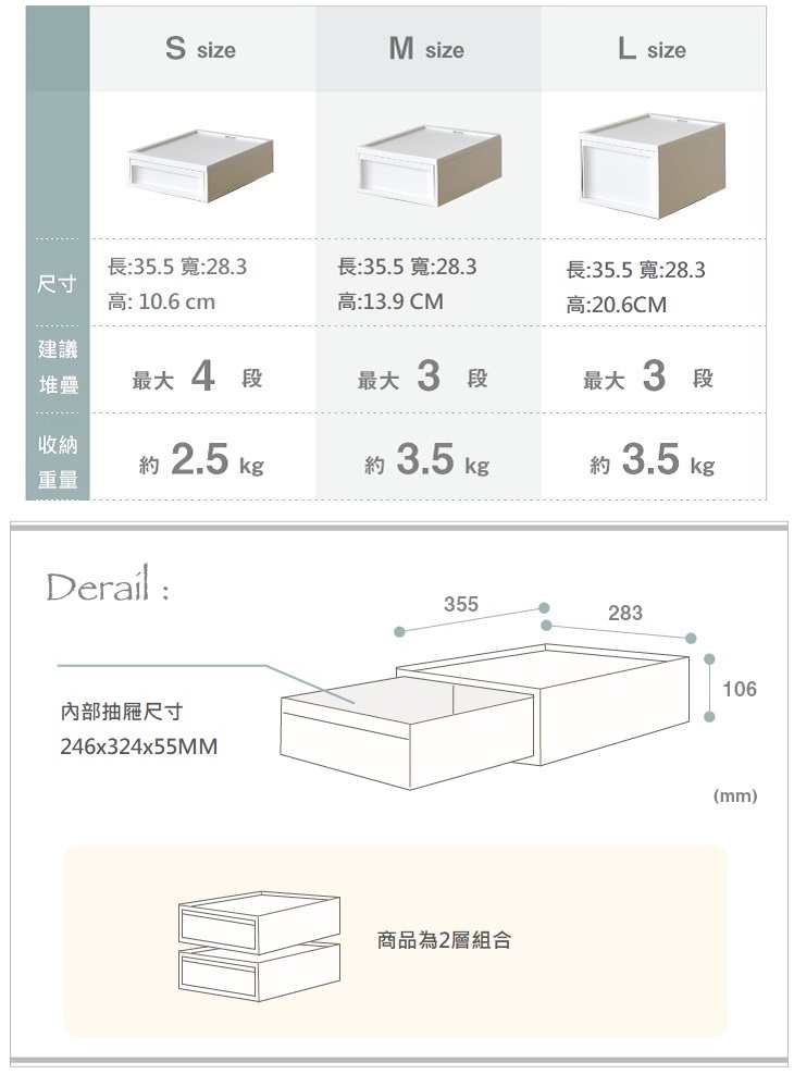 IRIS OHYAMA 愛麗思歐雅瑪 五層抽屜式組合收納櫃 NMKD-555 白色 1個 五層: 56cmX42.5cmX99cm