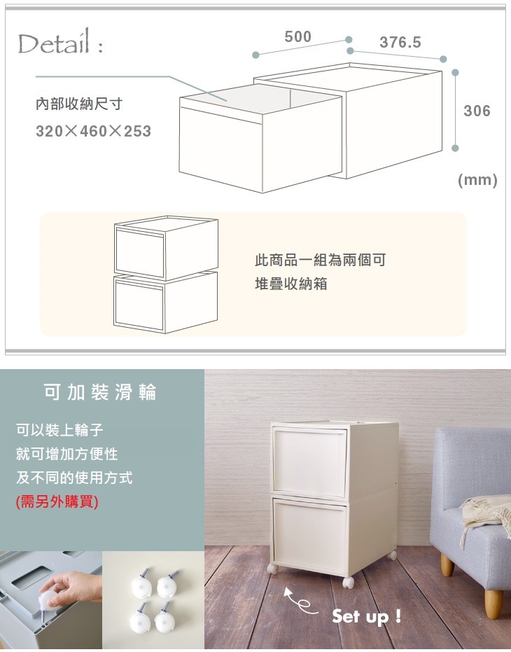 滾輪收納文件整理箱 無印風格 輕鬆收納 自由組合 長號高款 白色 32 x 15 x 24cm 1個