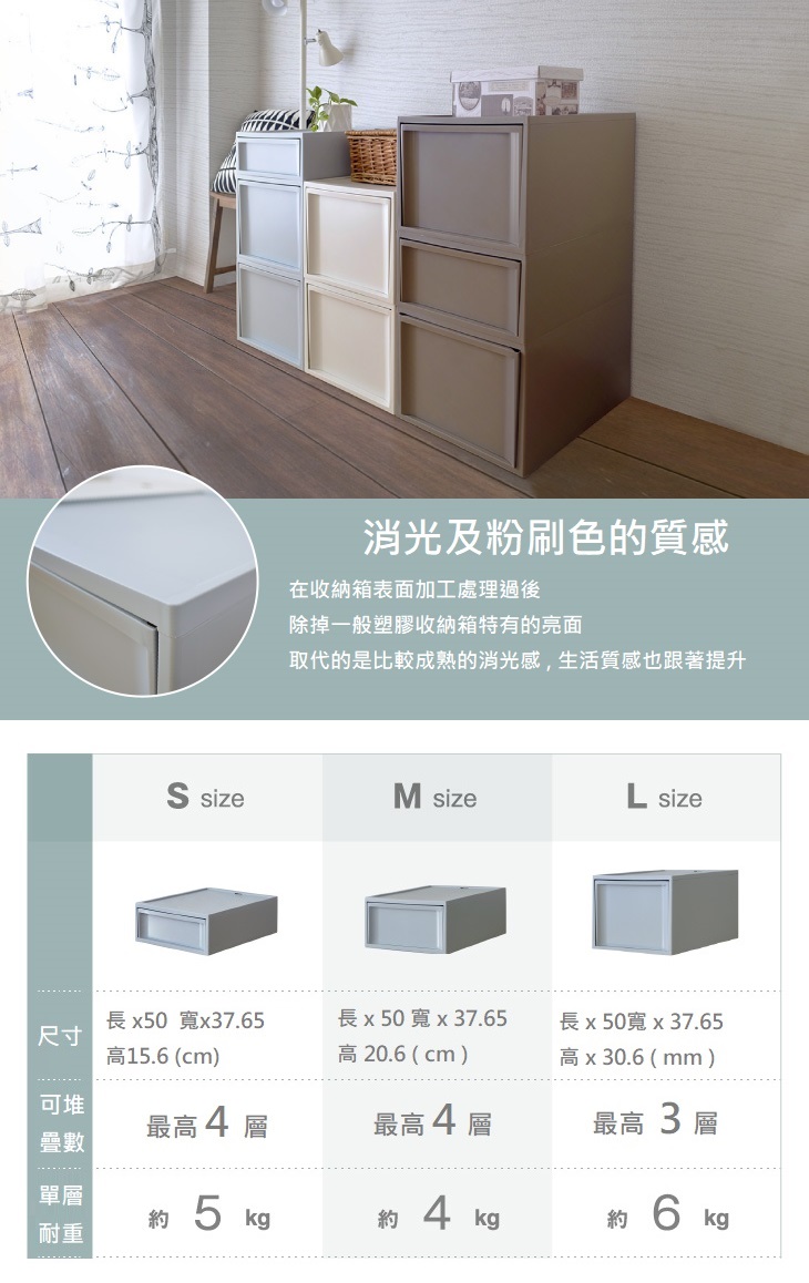 【日本霜山】無印風單層深型抽屜收納箱-3入