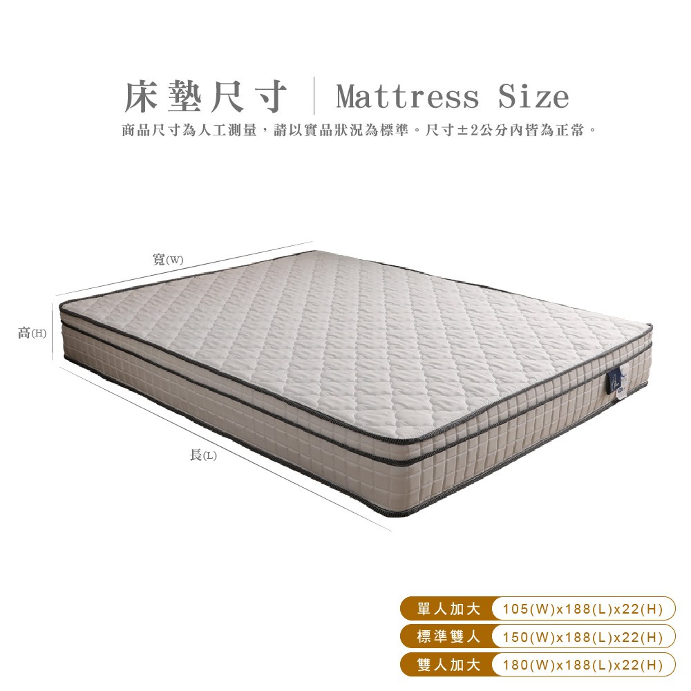 雙人加大6尺 飯店用透氣抗菌+護邊-麵包床護腰型-硬式獨立筒床墊-Ally愛麗