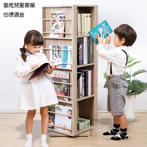 台灣生產外銷日本型錄的《C&B》迴轉四層展示架書架,能夠360度旋轉,並具有市面唯一的創新設計,兩面共有八層的書報雜誌展示架,可以將最喜歡的書報雜誌或CD擺放在收納架上,讓它們的封面也變成家裡的裝潢之一,隨意變換您的心情。因展示架的設計能讓書本的封面朝外尤其適合當成兒童書架,既可收納書本又能顯示繪本多采多姿的封面,讓喜愛的繪本封面變成孩子書房裝飾的一部分,更可刺激孩子拿取繪本來閱讀的動力與激發好奇心,拿取與收納都很便利,讓孩子學習看完書即歸還原處的的好習慣,非常適合孩子使用。