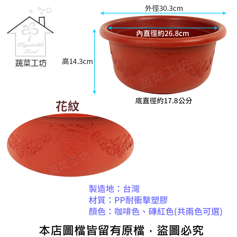 荷花盆1尺(無孔)-咖啡色.磚紅色(共兩色可選) 5個/組