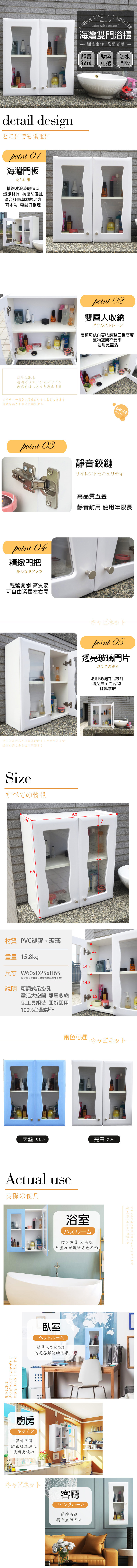 【Abis】海灣雙門加深防水塑鋼浴櫃/置物櫃(2色可選)2入白色