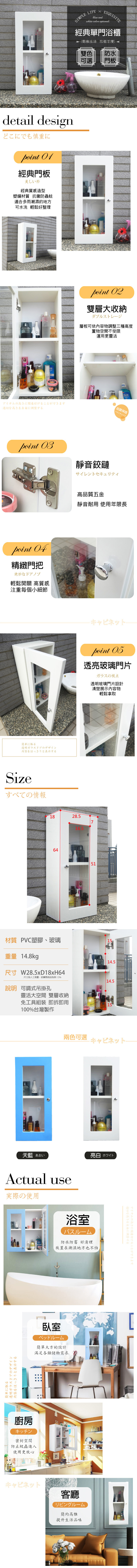 經典單門防水塑鋼浴櫃/置物櫃-白色1入