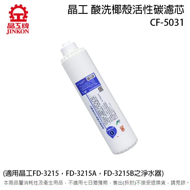晶工 酸洗椰殼活性碳濾芯 CF-5031(適用晶工 FD-3215,FD-3215A,FD-3215B之淨水器)