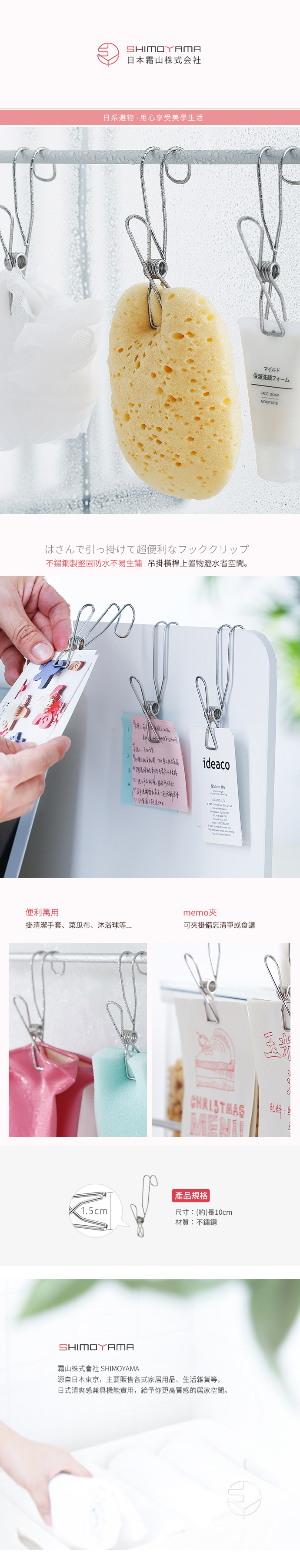 【日本霜山】不鏽鋼多功能防風萬用掛鉤夾-4入