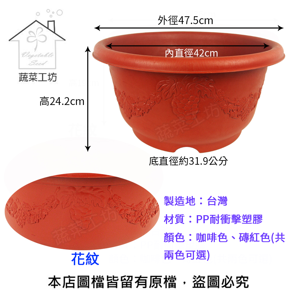 荷花盆1尺6(無孔)-咖啡色.磚紅色