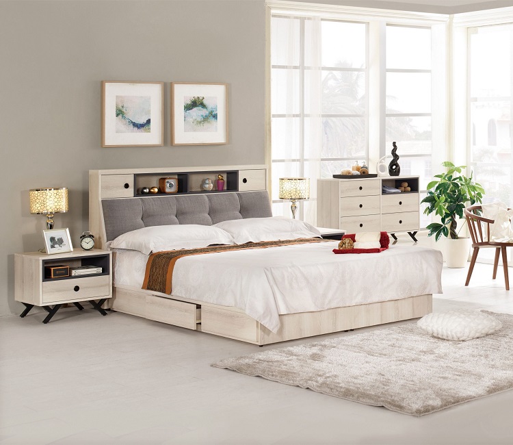 群居空間 羅爵5尺掀床房間組 床頭片+掀床+床墊 白橡色