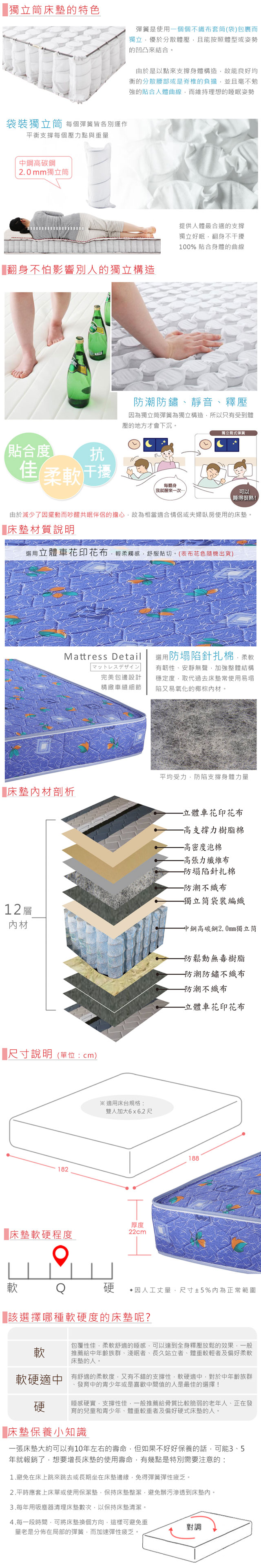 Homelike 喜家居印花二線獨立筒床墊-雙人加大6尺(1947)