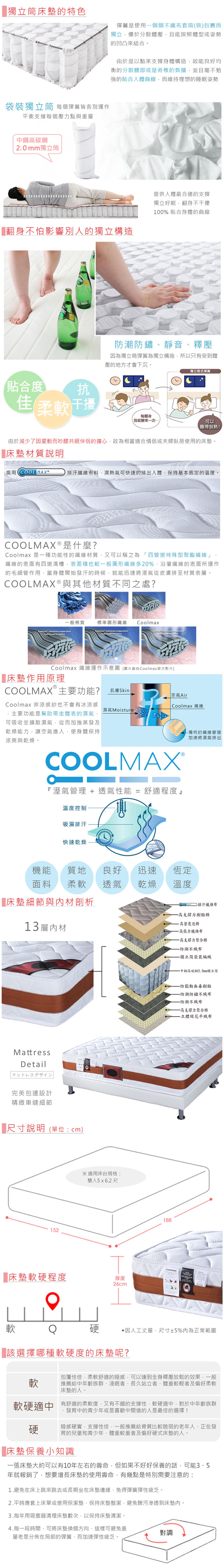 直人木業-CF018標準雙人-直人銀離子抗菌長纖獨立筒乳膠機能5尺床墊