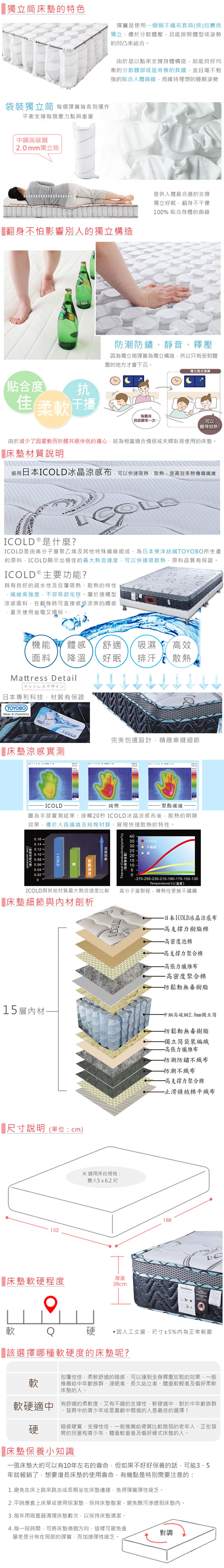 【KIKY】烏克蘭奈米石墨烯透氣硬式獨立筒床墊
