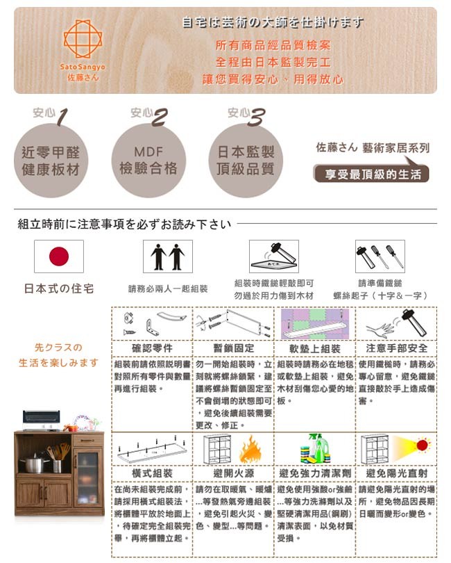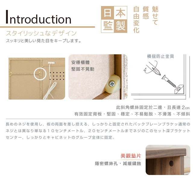 日本傳統的堅持細節,融入現代的設計美學。背板的斜角固定法,更加安穩櫃體的結構。美化墊片,隱密螺絲孔,減緩鏽蝕。【Sato】LUFFY映日浮光單抽三門開放收納櫃‧幅88cm。復古設計耐得住時間的消磨,美感優雅姿態,不言而喻。在縝密的細節之中,看見了日本職人的專注認真,一步一腳印證文化的瑰麗。