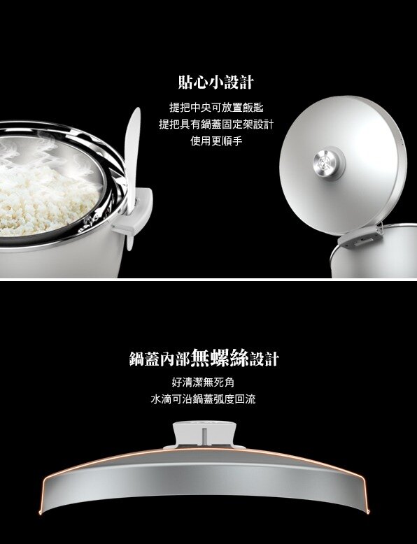 (3) 304不鏽鋼1MM厚內鍋,可直火加熱,增加提把方便使用。