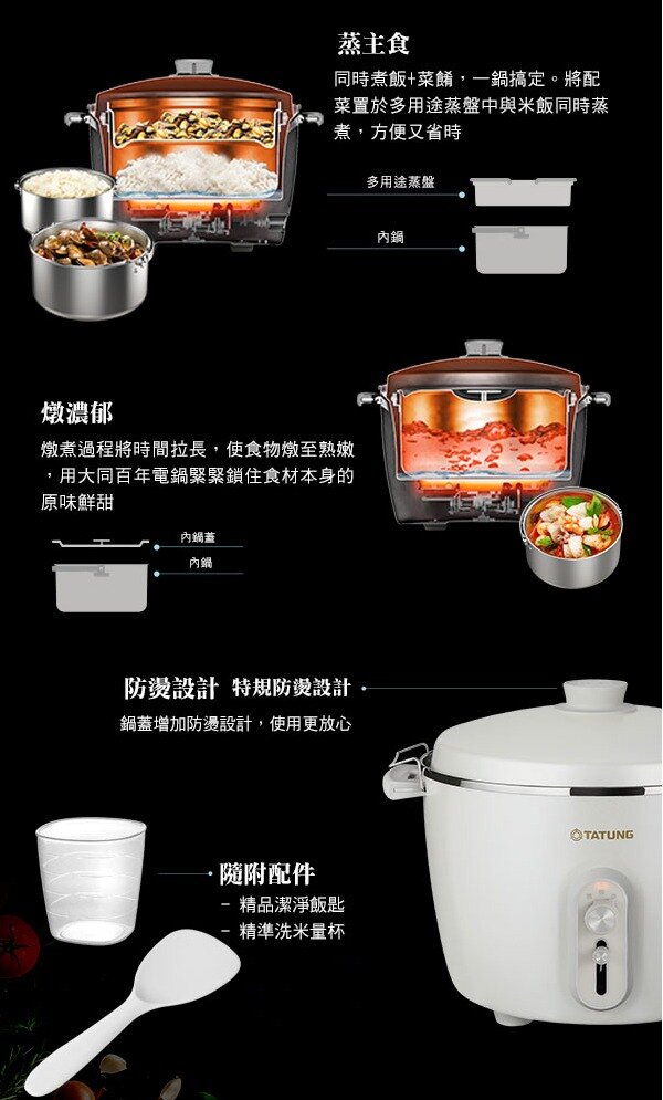 (8) 煮飯/粥、蒸、滷、燉多用途。