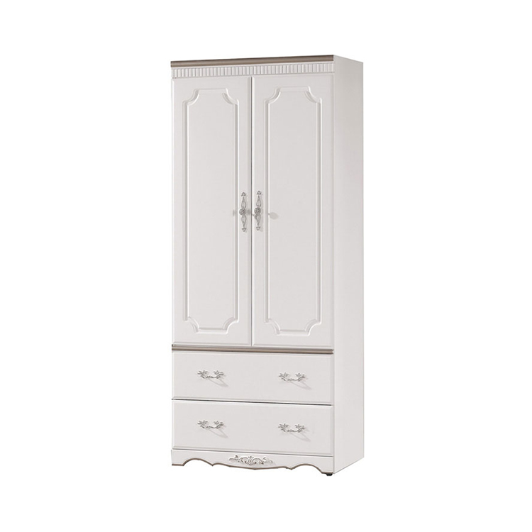 文創集 帝伊新古典白2.7尺二門二抽高衣櫃-80.5x59x198cm免組