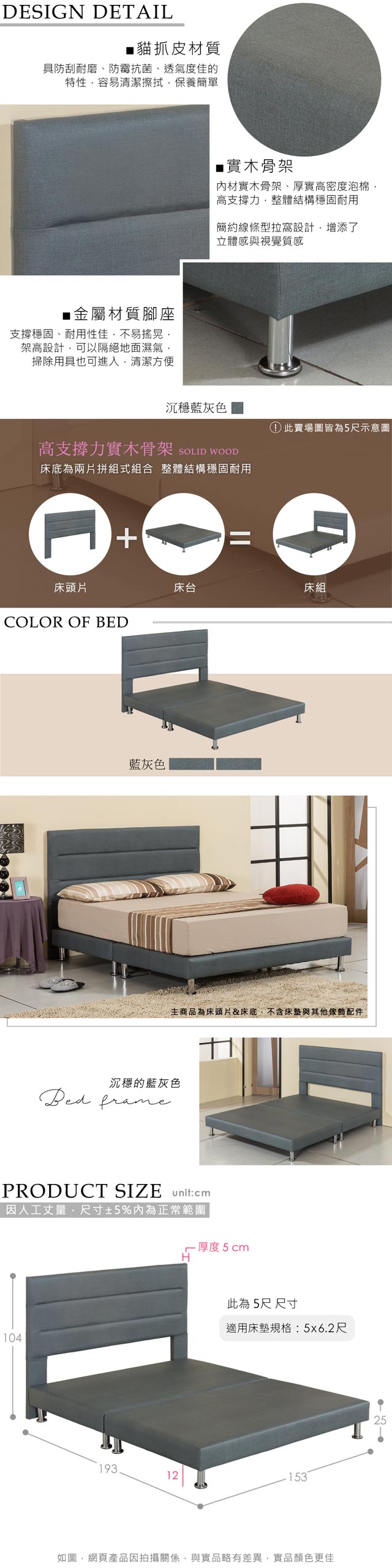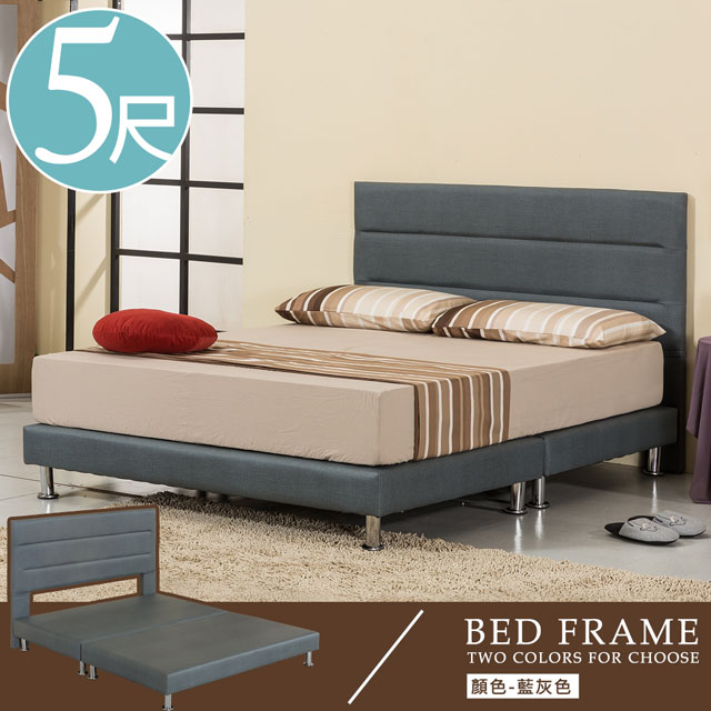 IHouse-貝殼波堤 雙人5尺(貓抓皮床頭片+高腳床架)-房間兩件組/床組迷濛藍#627-19