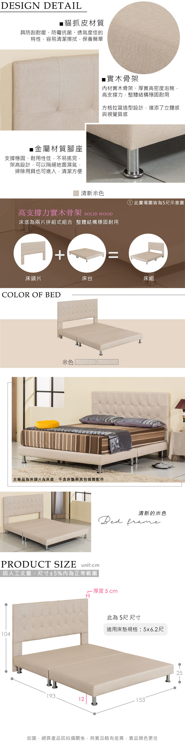 Homelike 喜家居雙人5尺貓抓皮床架組(米色)(1952)