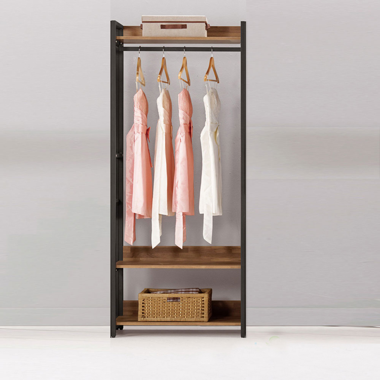 展示架/衣櫥架/實木衣架 松木 60x30x180公分 三層烤黑單桿衣櫥 附輪 dayneeds