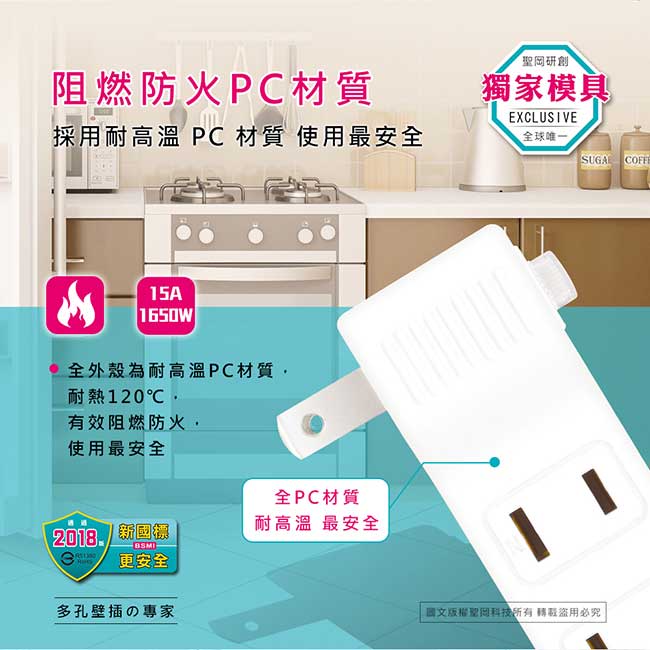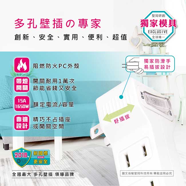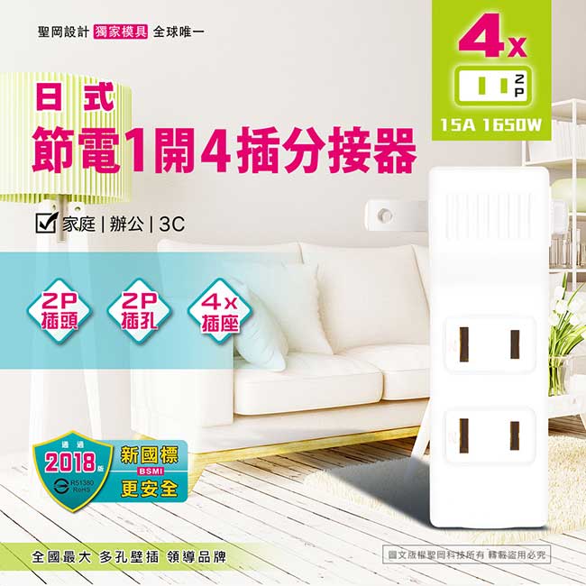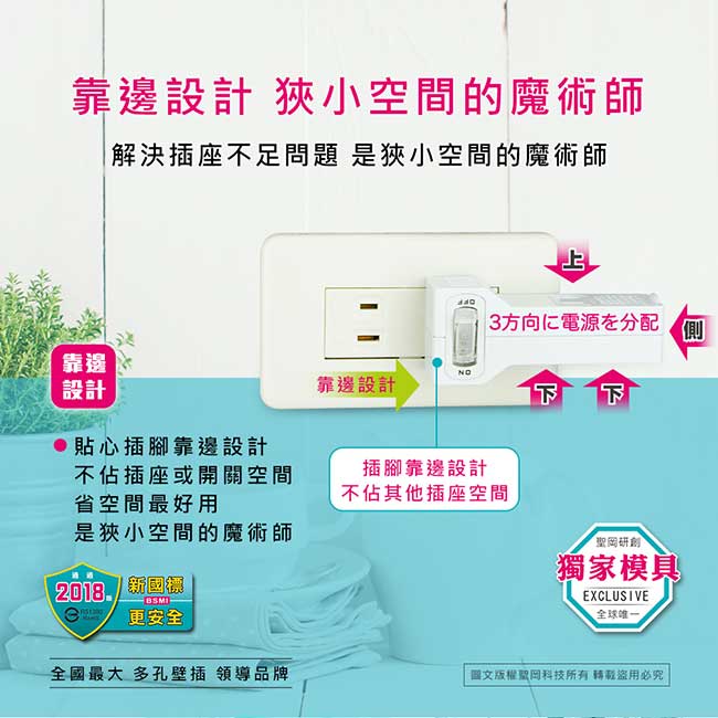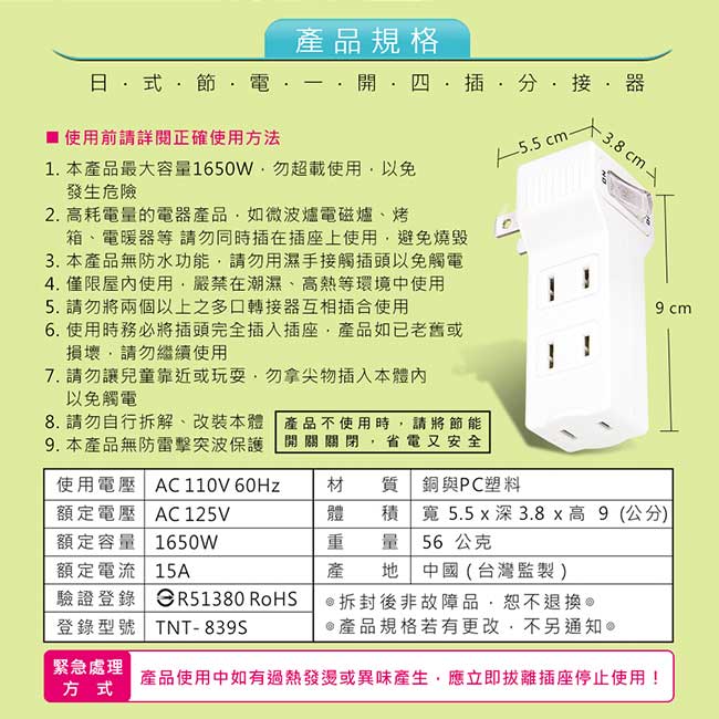 【聖岡科技Dr.AV】TNT-839S節電 1開4插 分接器 壁插