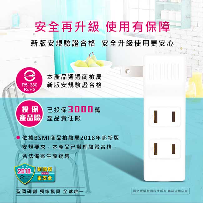 [寶旺旺]明家 D型三面插 附2PCS防塵蓋A-131