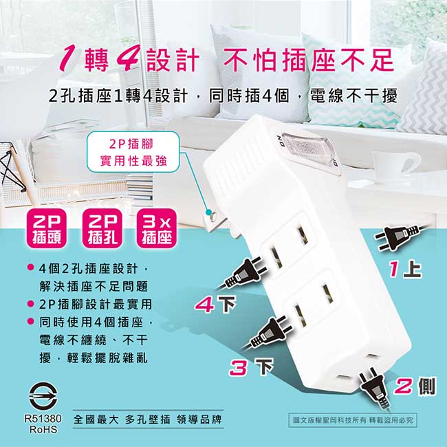 【聖岡科技Dr.AV】TNT-825R 日式 新轉向 四面插 (分接插頭 擴充插頭 分接插座 旋轉插頭)