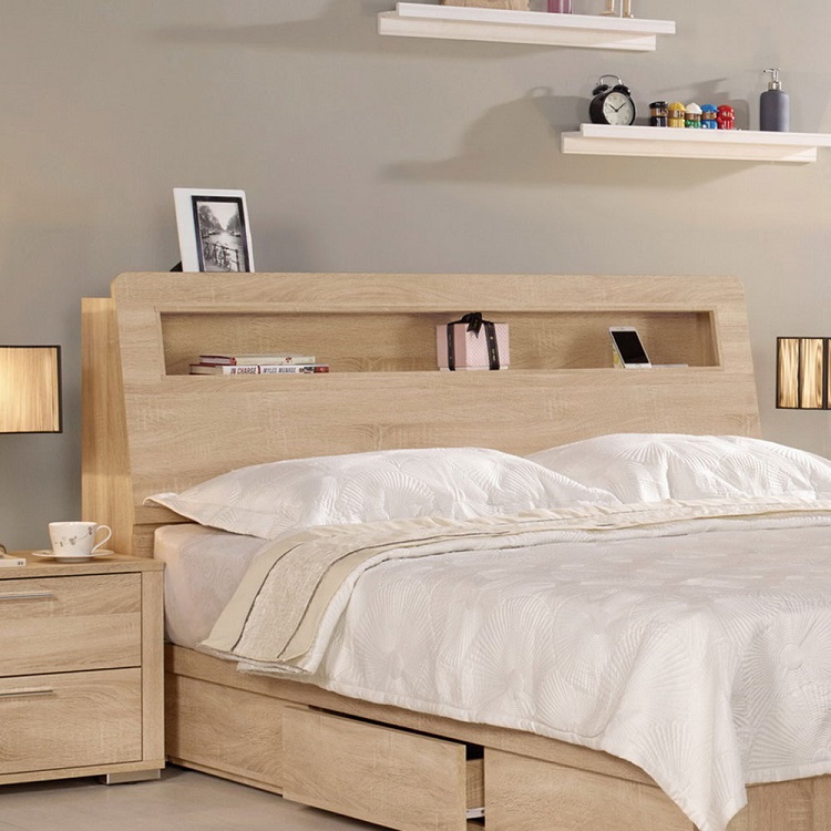 源氏木語西雅圖橡木原木色斜靠雙人5尺150x190夜燈低舖床架 Y90B28 (H014324397)