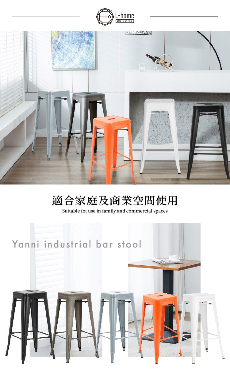讓[E-home]Yanni亞尼工業風可堆疊金屬吧檯椅-高76cm來完成您的休閒後院酒吧。