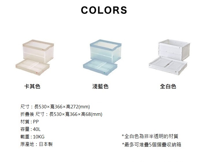 日本 RISU 可折疊式收納箱 40L 三色可選