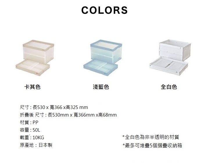 可折疊式收納箱 50L(單入) 全白色