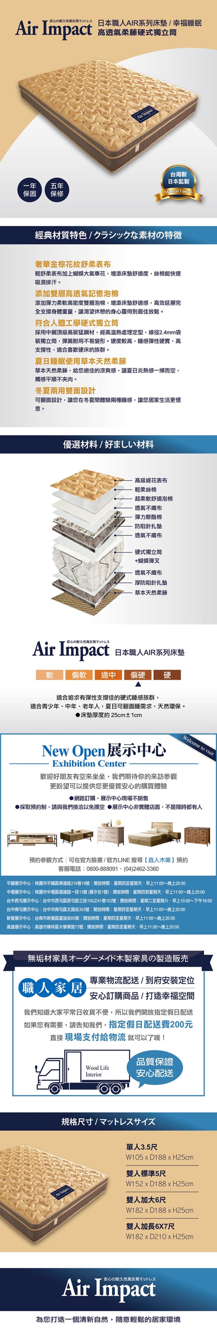 【本木】K301 石墨烯 乳膠高彈簧獨立筒床墊-雙人5尺