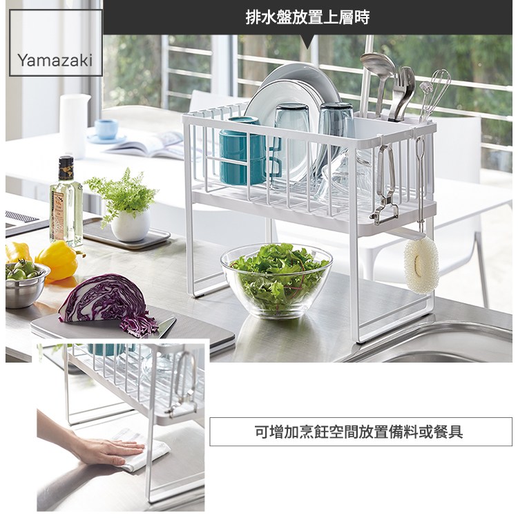 ▴ 排水盤可自行調整上下位置、側邊的掛鉤還能收納小物。