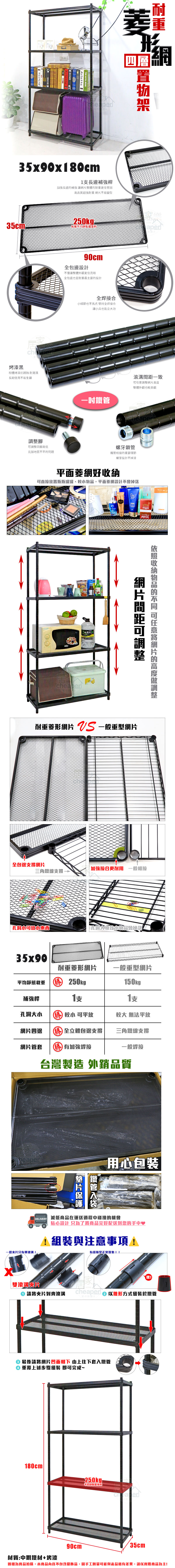 【居家cheaper】MIT菱形網四層架-黑 35X90X180CM35X90X180CM