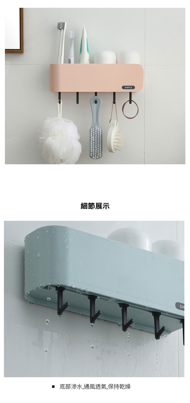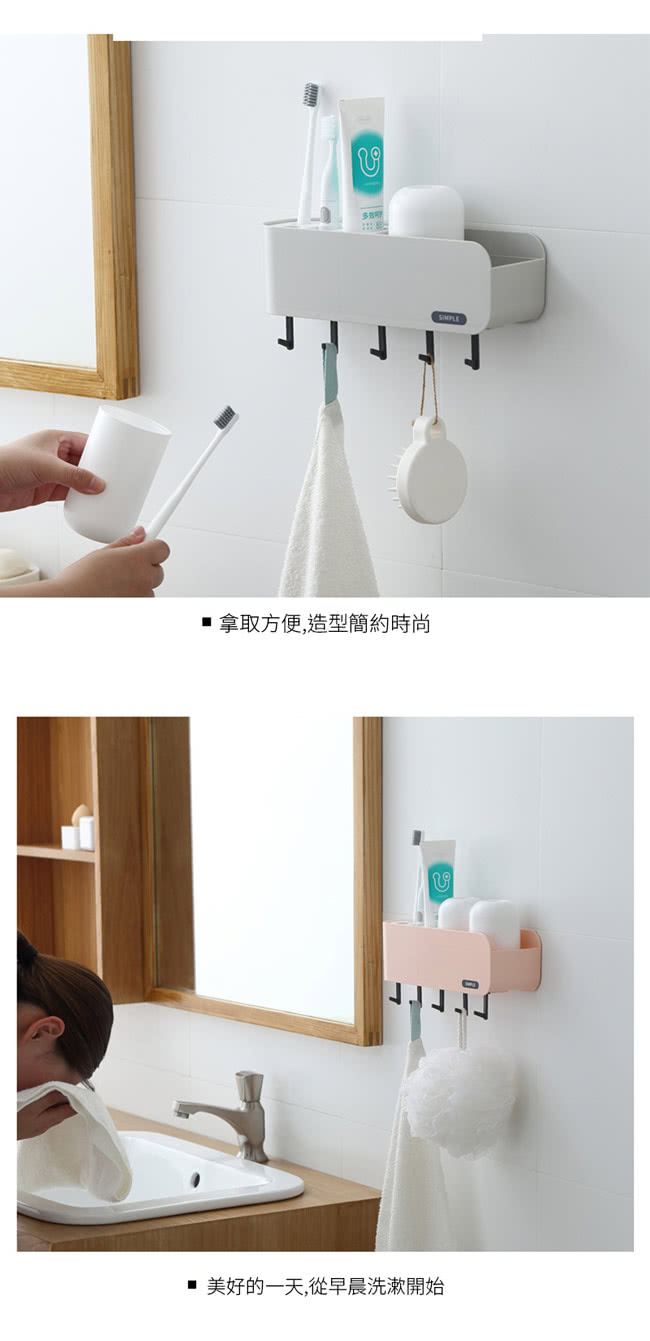 【IDEA】掛壁式無痕盥洗用具收納架(贈漱口杯)粉色
