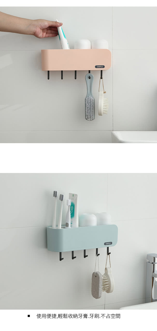 ecoco 牙刷架 漱口杯 漱口杯架 牙刷收納 壁掛 牙膏 收納架 置物架 無痕 牙刷置物架 免打孔 牙刷杯架