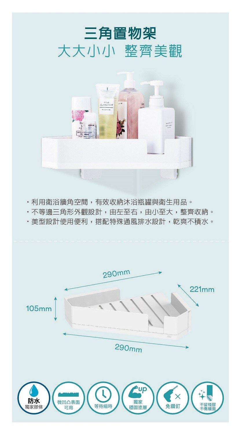 特力屋精選浴室收納商品,嚴選材質在潮濕環境不易生鏽發霉,並提供多種規格適用大小空間、鎖牆、吸盤、無痕、落地放置等多樣功能選擇,安裝容易,幫您輕鬆收納各式盥洗用品,打造乾淨整齊浴室空間。
