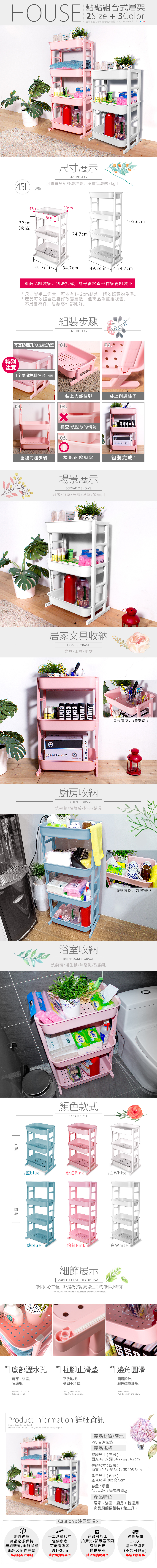 【HOUSE】多功能組合式層架-四層-三色可選粉色