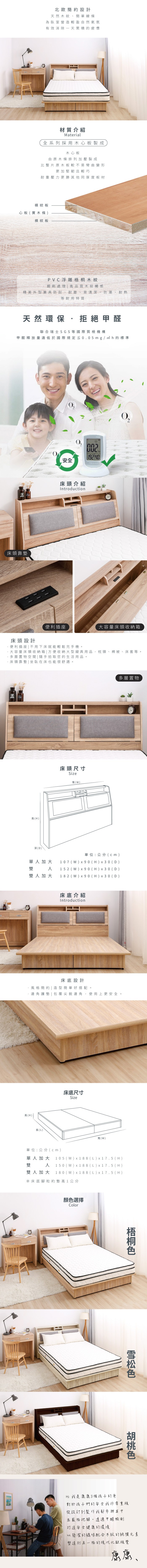 傢俱工場-吉米 MIT木心板床組 (插座床箱+床底) - 雙人5尺梧桐